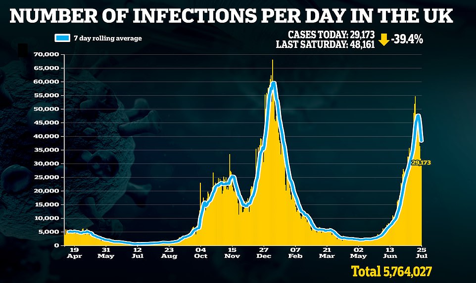 Another day, another drop in cases. Coronavirus cases across the U.K. have fallen by nearly 40% in a week, dipping below 30,000 for the first time in a fortnight. Too early to start gloating?