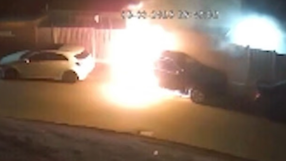 A security camera has captured the moment an electric Mercedes worth £50,000 exploded in Sheffield due to a ‘battery fault’, destroying two other cars parked nearby and trapping the owner in his house: "I could have died."