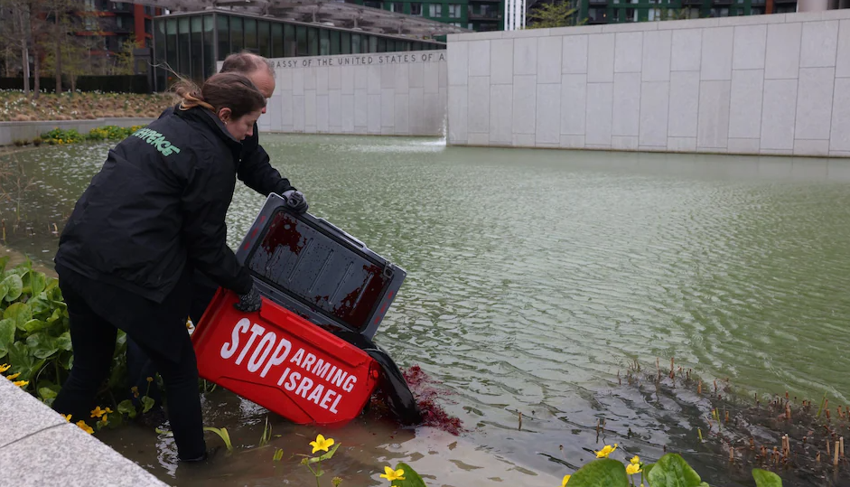 Greenpeace Pours ‘Blood’ in US Embassy Pond to Protest Arming Israel, Leading to Arrest of Charity Boss