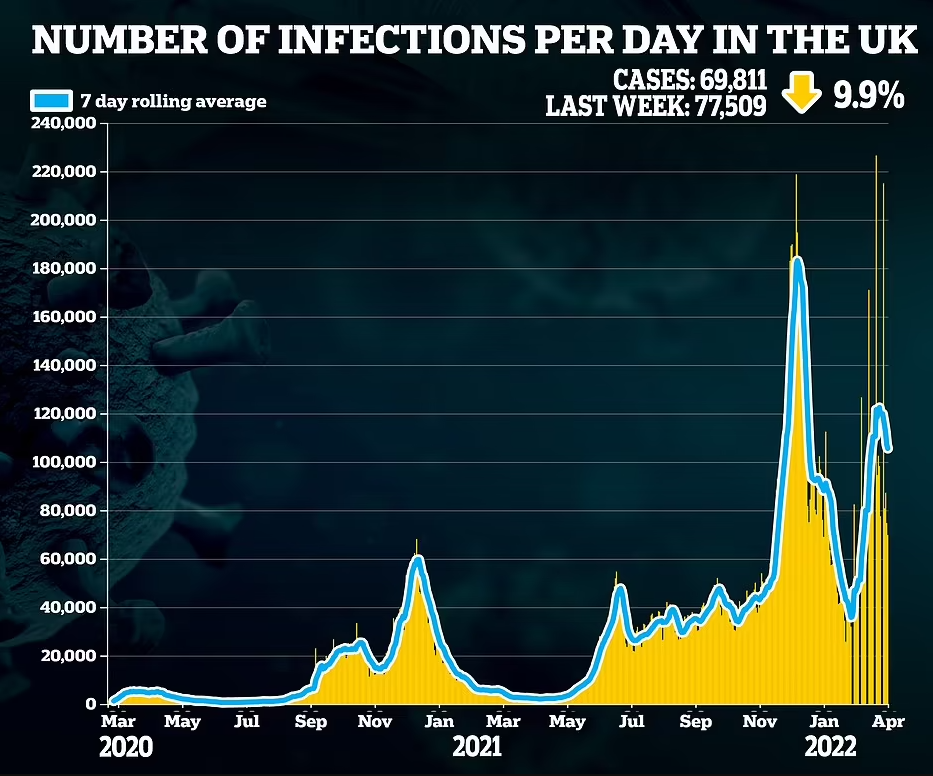 Britain's daily reported Covid infections have now fallen for five days in a row, despite the ONS warning that the virus last week was more prevalent than ever.