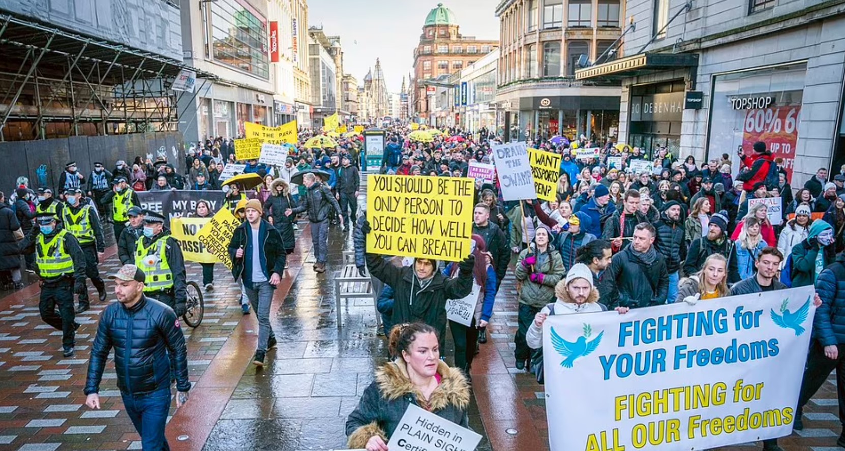 An 'unplanned' anti-lockdown protest in Scotland's largest city has taken place today that appears to be one of the country's largest demonstrations since the pandemic began.