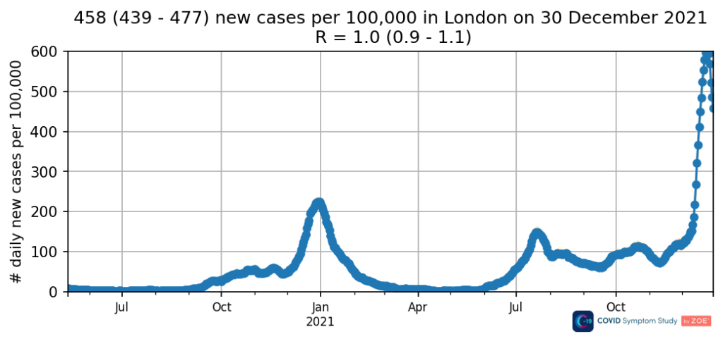 New daily infections are falling in London, data suggests. The ZOE app shows infections falling in the capital since December 27th, a trend that appears to be confirmed by the latest Government reported infection data.
