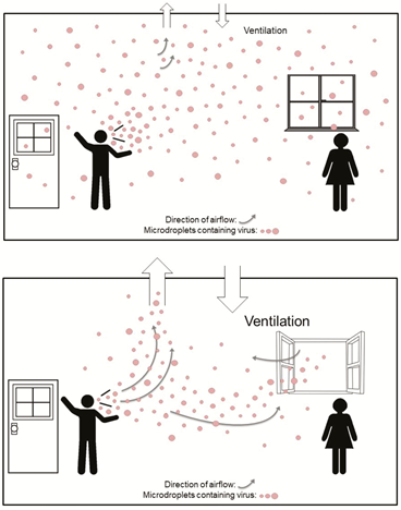 According to the most up-to-date data, COVID-19 primarily spreads via aerosols that build-up in the air of a room rather than via larger droplets or through contact with surfaces (fomites). This is why many of the measures taken to combat the spread of COVID-19, such as distancing, barriers, face masks (see below) and cleaning surfaces are ineffective.