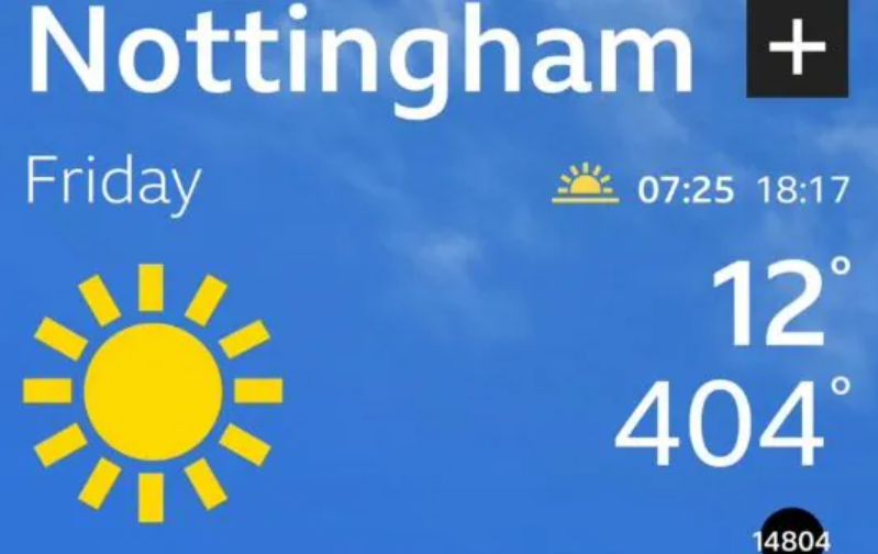 The BBC Weather app incorrectly forecast winds of 15,000mph in Oxford Circus and temperatures of 404°C in Nottingham amid a countrywide software failure.