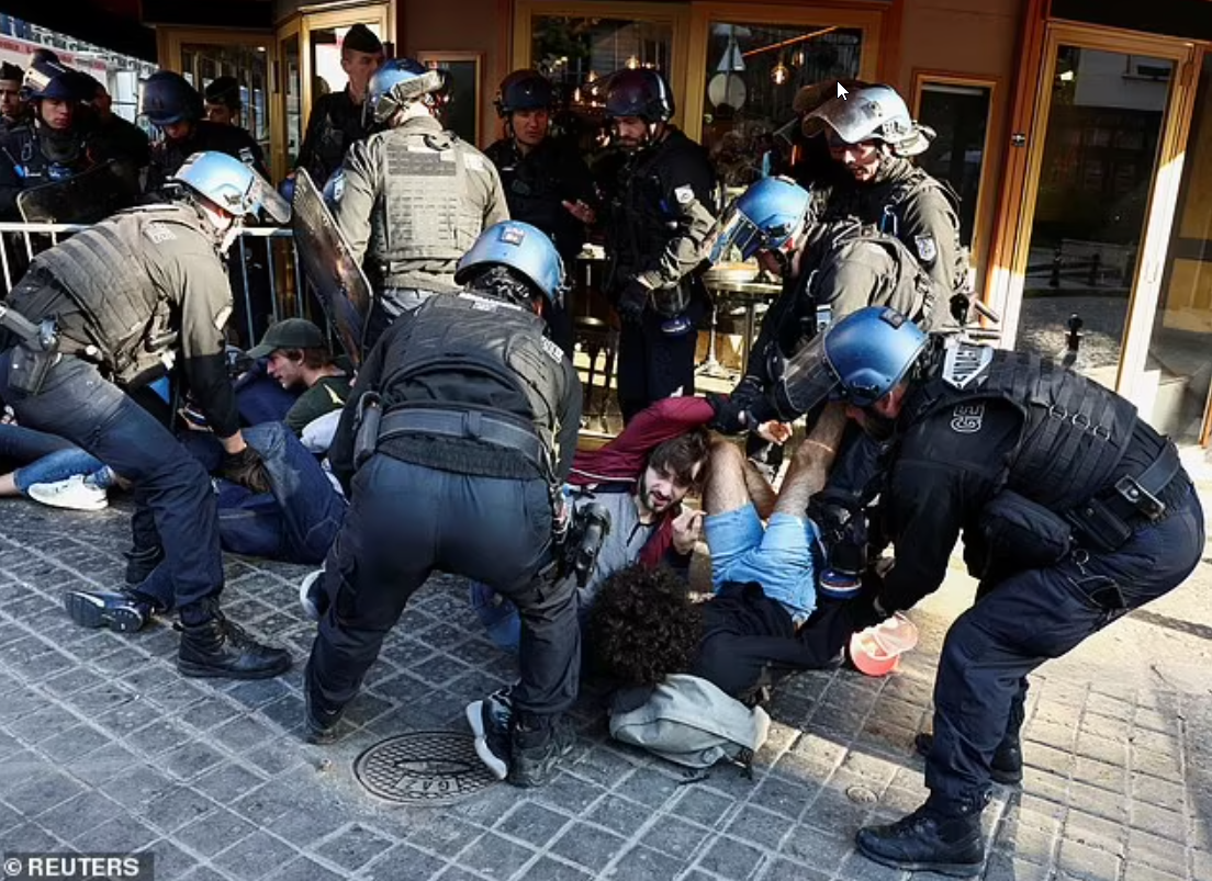 Paris police showed their U.K. counterparts how to deal with road-blocking eco-loon protesters as they used tear gas and baton charges to stop activists disrupting oil giant Total's annual general meeting.
