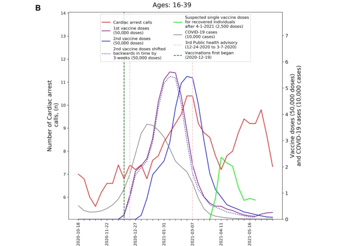 Emergency calls for cardiac arrest in young people in Israel were associated with the vaccine rollout, spiking 25% higher than in earlier years, but not with COVID-19 prevalence, a study in Nature has found.
