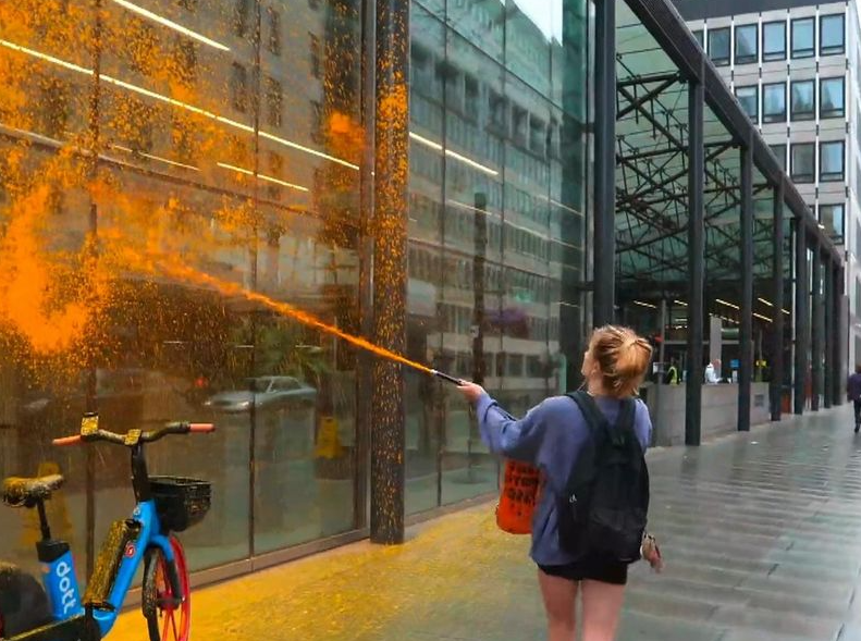 Keir Starmer has been told by the Government that he must pay for the damage caused by his "mates" in Just Stop Oil after the eco-protesters sprayed the Department for Energy Security and Net Zero with orange paint.