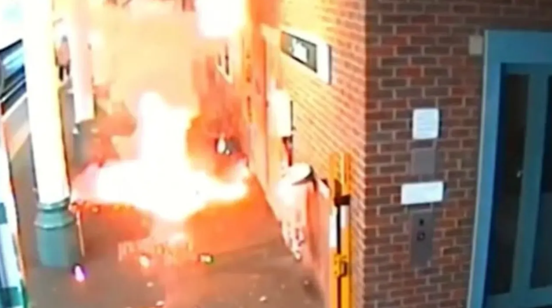 Watch as an e-bike explodes at a London train station as four people narrowly escape injury. It comes after an e-bike caught fire outside Buckingham Palace and another exploded in a block of flats in Roehampton.