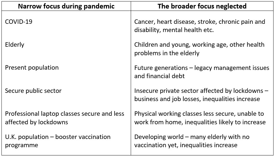 It is abundantly clear that the management of the pandemic has not been proportionate or sensitive to a broad range of needs – this fundamental principle of Public Health has not been followed.