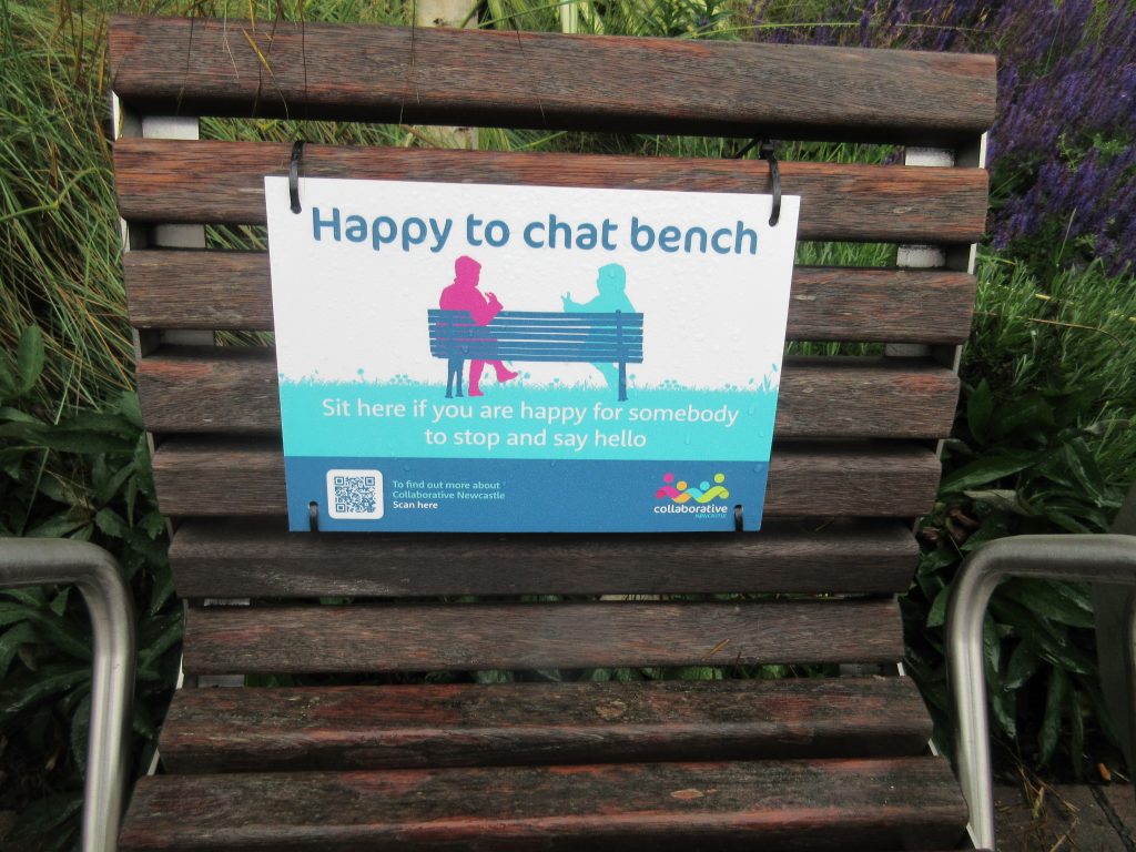 At the bottom of the sign on the bench on St Thomas Street is printed the logo of “Collaborative Newcastle” which describes itself as “an innovative new partnership” aiming “to improve the health, wealth, and wellbeing of everyone in the City”.