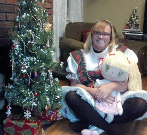 The adult baby’s very open-minded adoptive parents had real children and grandchildren too, one of whom was aged seven when Stefoknee started living with them. The real child said she would prefer Stefoknee to be her younger sister, not her older one, so the false ‘child’ suddenly exploited the inherent elasticity of trans time to miraculously become six years old instead of eight, just like that.
